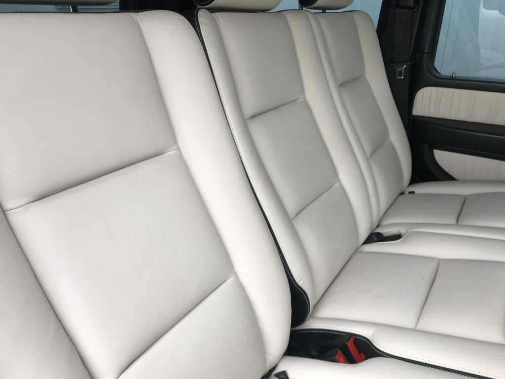 メルセデス・ベンツ Gクラス G550 ホワイトレザーシート汚れ シートクリーニング専門店 神奈川県 横浜市 青葉区 都筑区 鶴見区 神奈川区 西区 中区 南区 保土ケ谷区 磯子区 金沢区 港北区 戸塚区 港南区 旭区 緑区 瀬谷区 栄区 泉区 を中心に近隣の川崎市も対応 アルミホイール修理・キズ・曲がり(歪み)・色変更(カラーチェンジ)とインテリア レザー(革)・合皮・モケット・プラスチックなど車の内装の修理及び修復のプロショップ