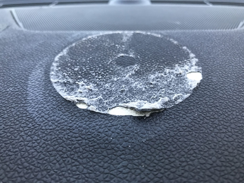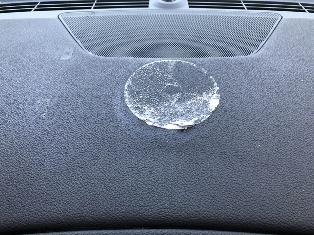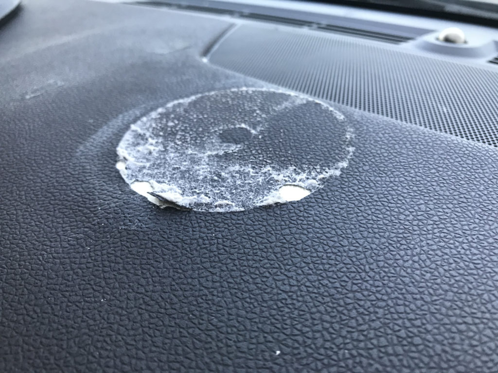 ダッシュボード 両面テープ取付跡 表皮剥がれ・捲れ(柔軟パテ充填塗装リペア)