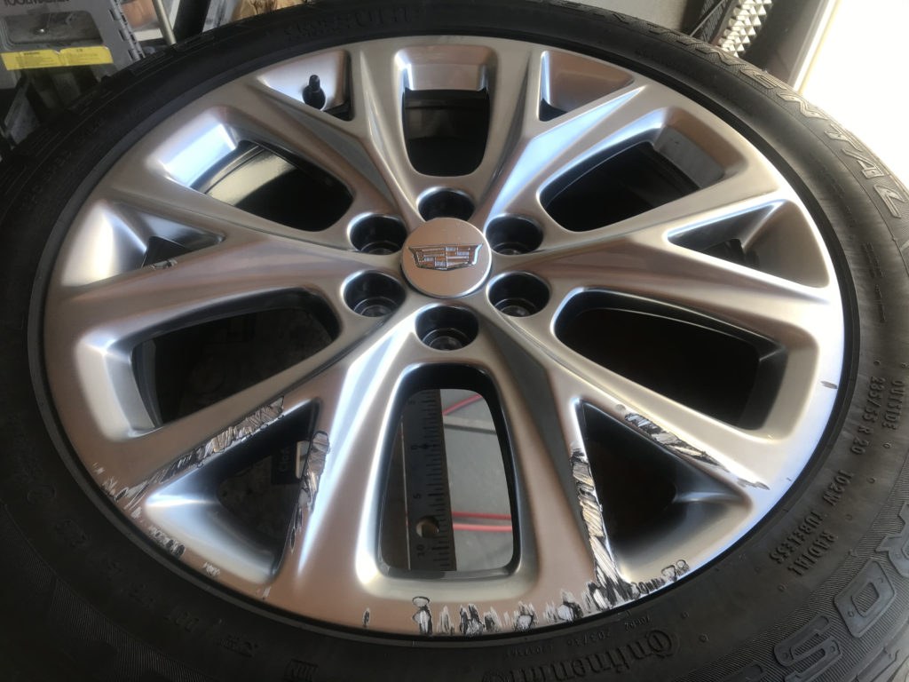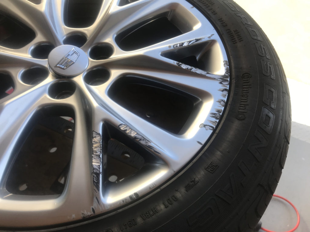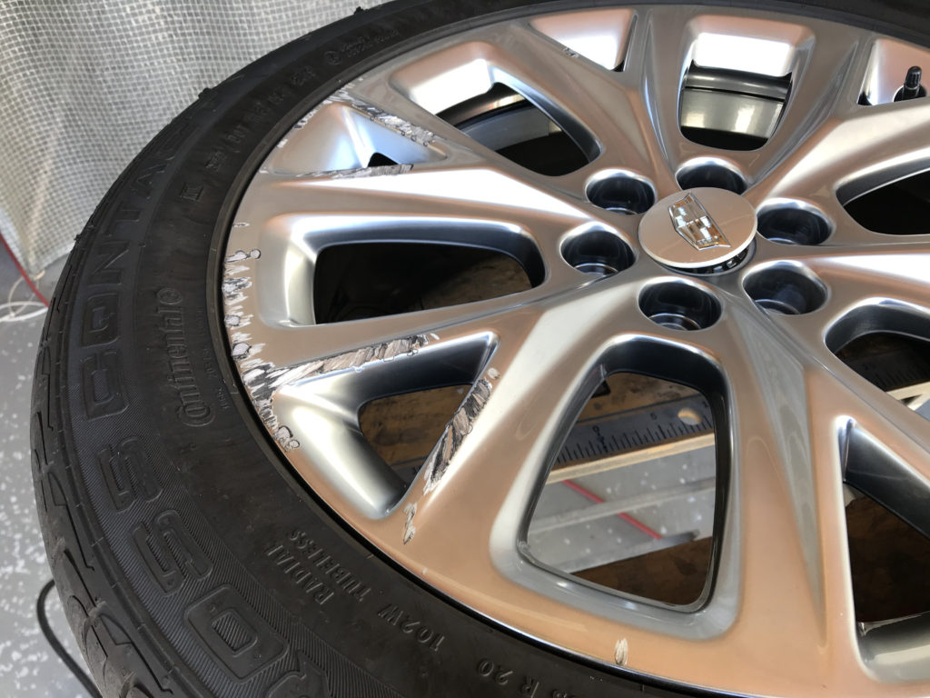 キャデラック 20inch ハイパーシルバーアルミホイールキズ ハイパーシルバー塗装リペア専門店 トータルリペア クラフツゴーマルゴにお任せください。神奈川県 横浜市 青葉区 都筑区 鶴見区 神奈川区 西区 中区 南区 保土ケ谷区 磯子区 金沢区 港北区 戸塚区 港南区 旭区 緑区 瀬谷区 栄区 泉区 を中心に近隣の川崎市も対応 アルミホイール修理・キズ・曲がり(歪み)・色変更(カラーチェンジ)とインテリア レザー(革)・合皮・モケット・プラスチックなど車の内装の修理及び修復のプロショップ
