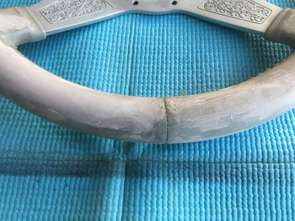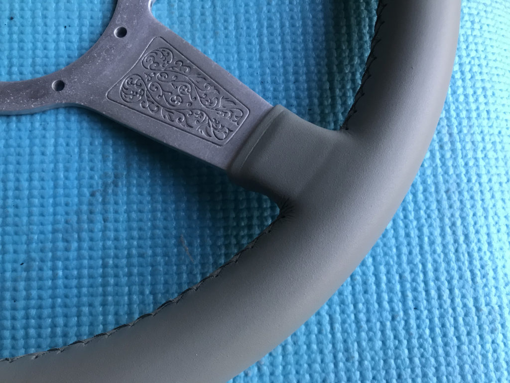 CRAFTS505の施工実績をご覧いただきありがとうございます、本日2件目の施工はステアリング単体持ち込みのお客様で、全周にポリパテが盛られた状態でした。ステアリングなど柔軟性が必要な素材にポリパテは使えないため削り落としてから柔軟性のあるパテを充填して整形を行い調色後本革の風合いで塗装リペアしました。
