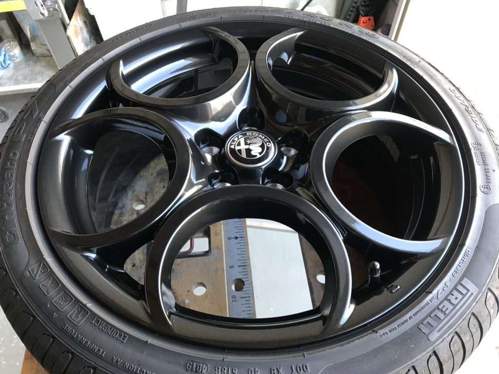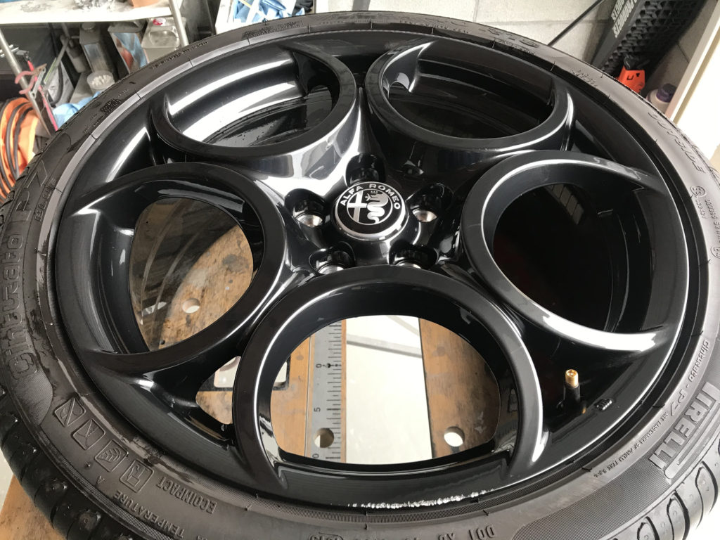 CRAFTS505の施工実績をご覧いただきありがとうございます、本日のリペアはアルファロオ ジュリエッタの純正18inchガンメタホイールのキズを茶系・黒味・青味など調色を行いガンメタ塗装でリペアさせていただきました。