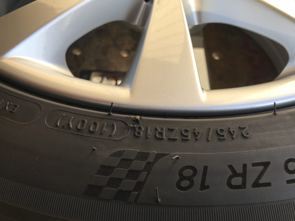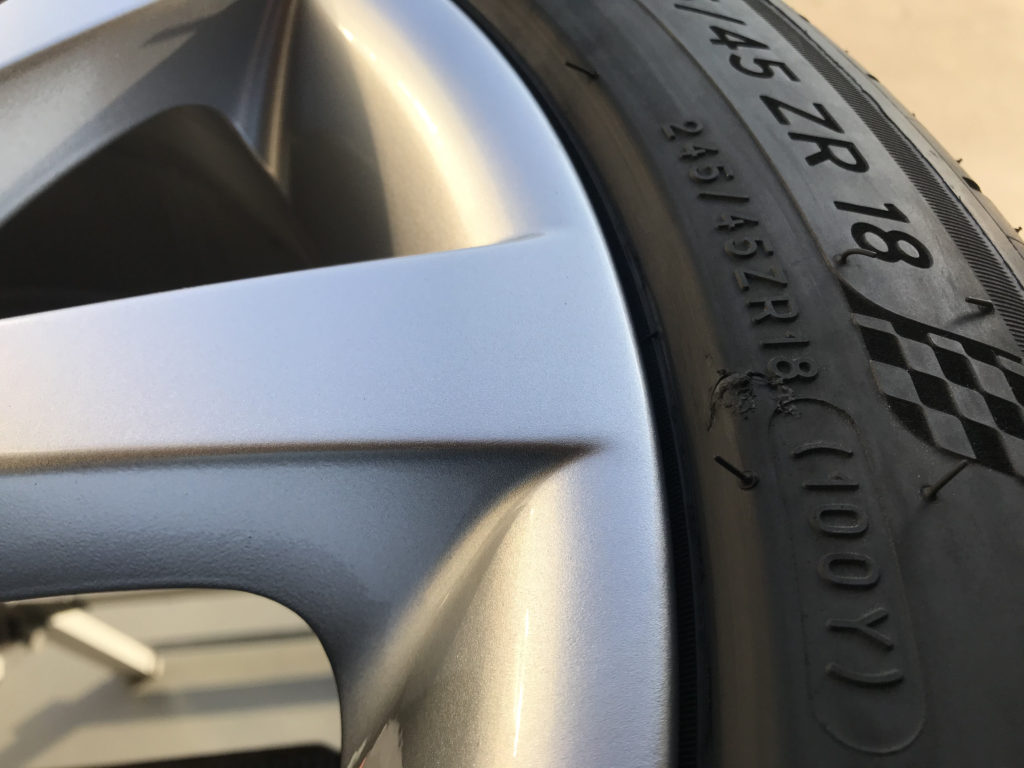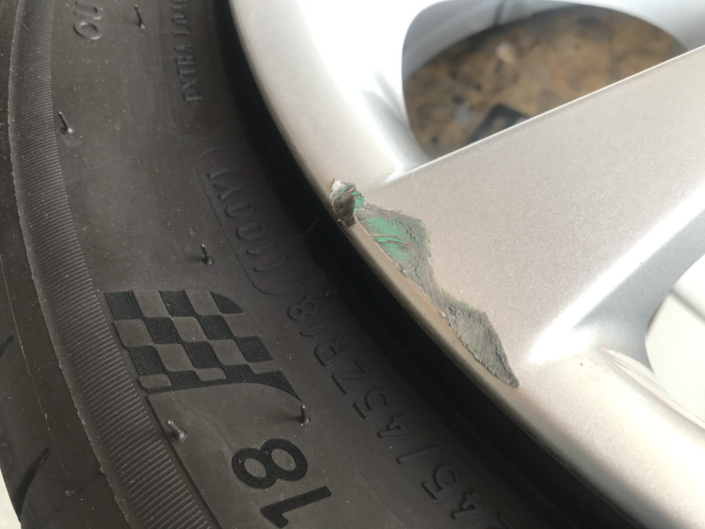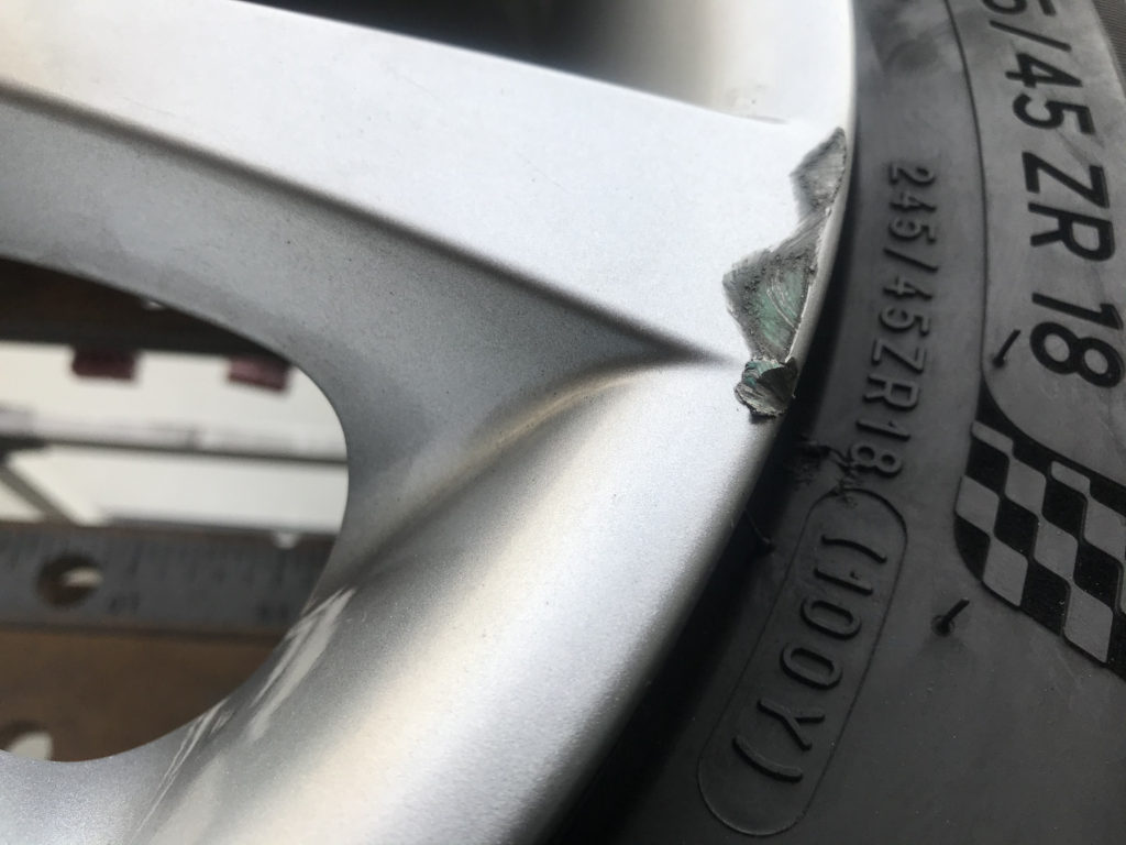 純正 シルバー アルミホイールキズ(硬化パテ充填塗装リペア)
