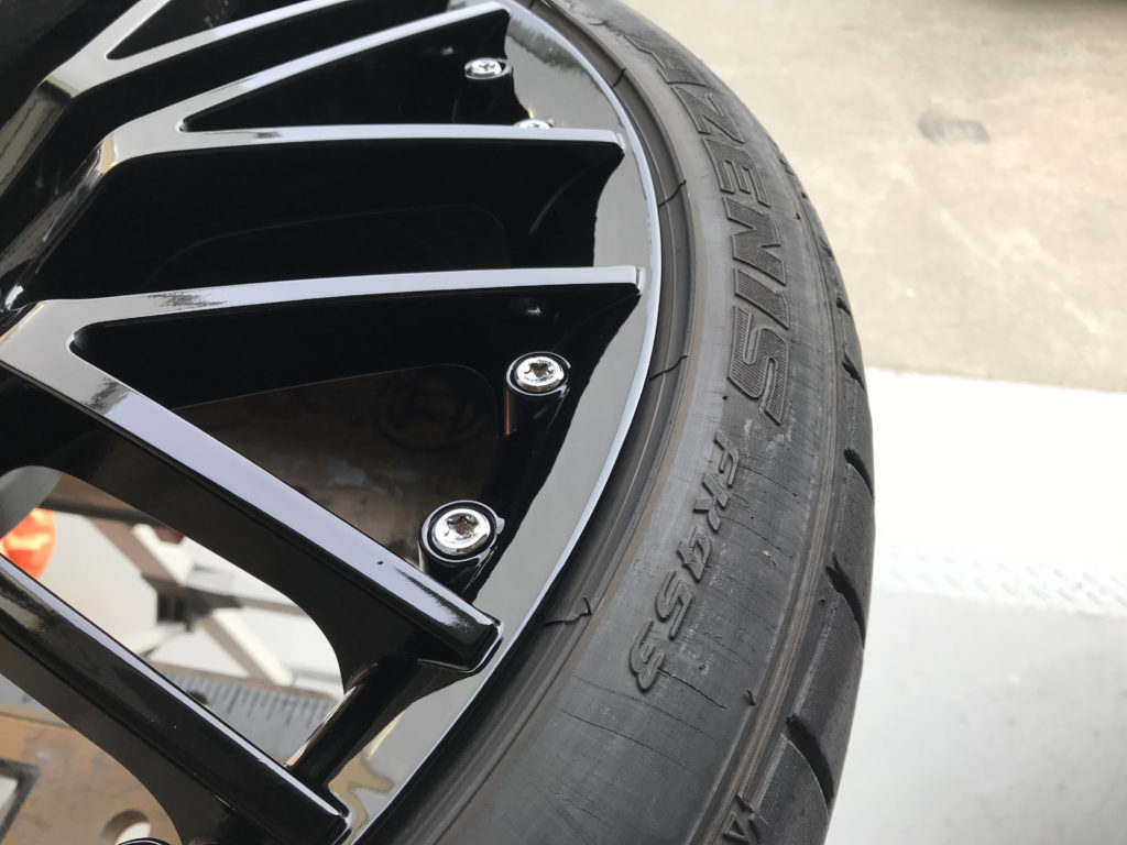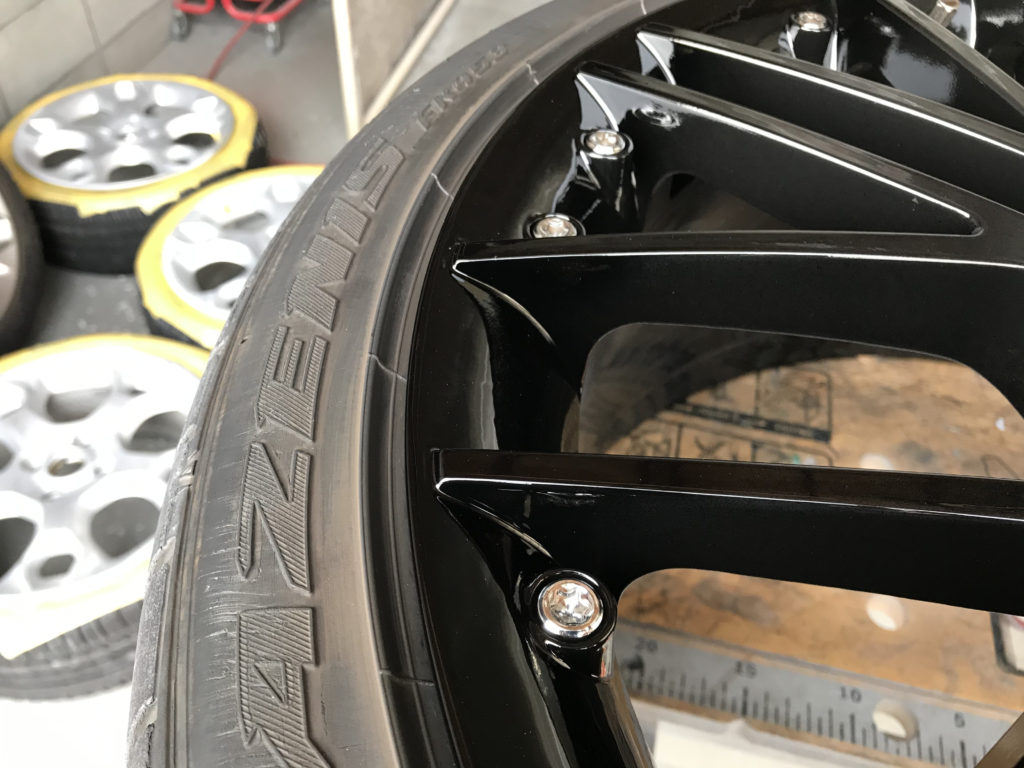 CRAFTS505の施工実績をご覧いただきありがとうございます、本日はカールソンの21inchブラックエディションのリム抉れキズを硬化パテを充填後整形を行い部分ブラック塗装でリペアさせていただきました。