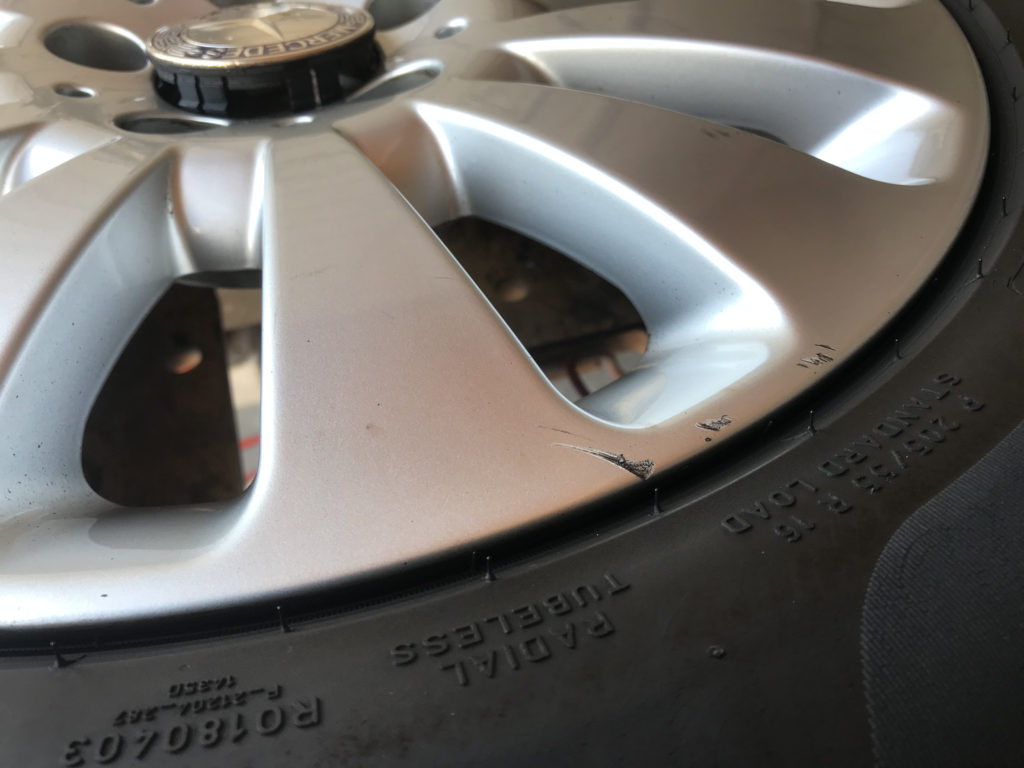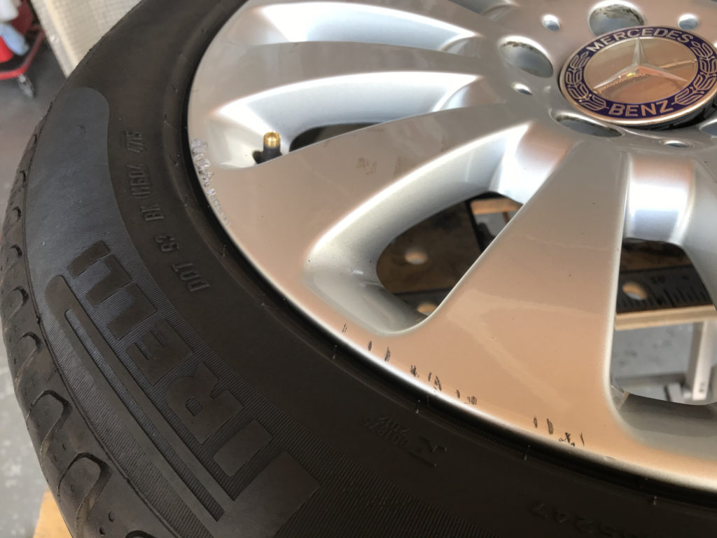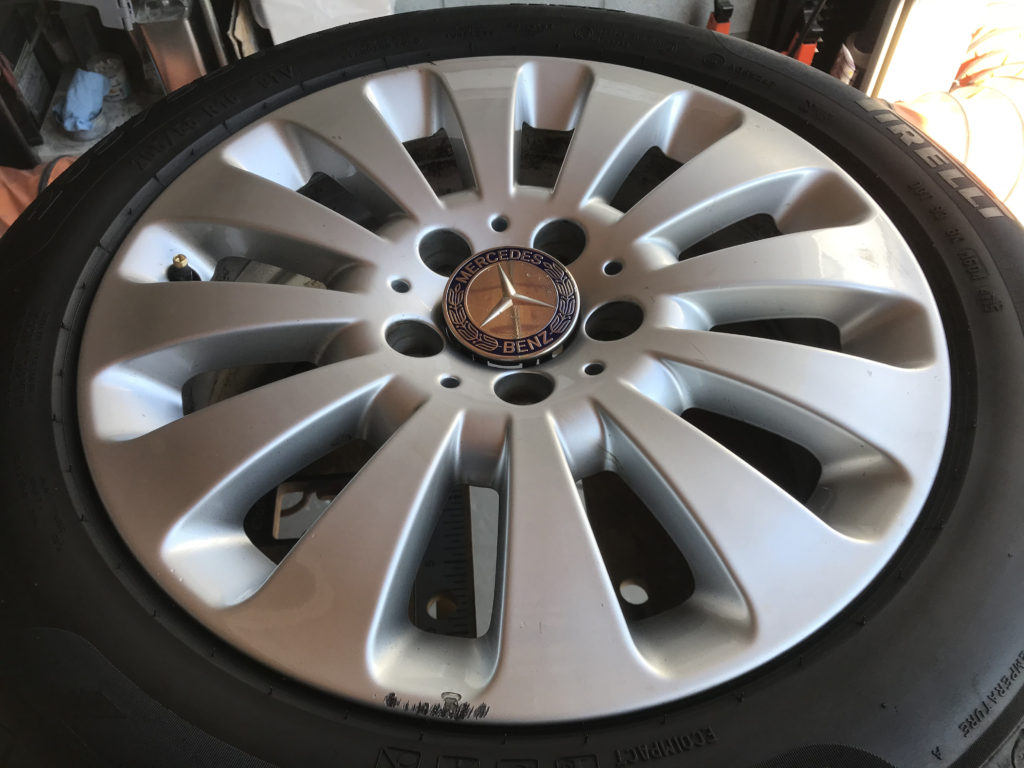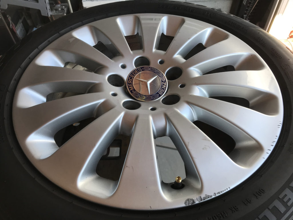 CRAFTS505の施工実績をご覧いただきありがとうございます、本日のリペアはメルセデス・ベンツC200の純正16inchアルミホイールガリキキズを細かいキズを含め同様のシルバー色で塗装リペアさせていただきました。