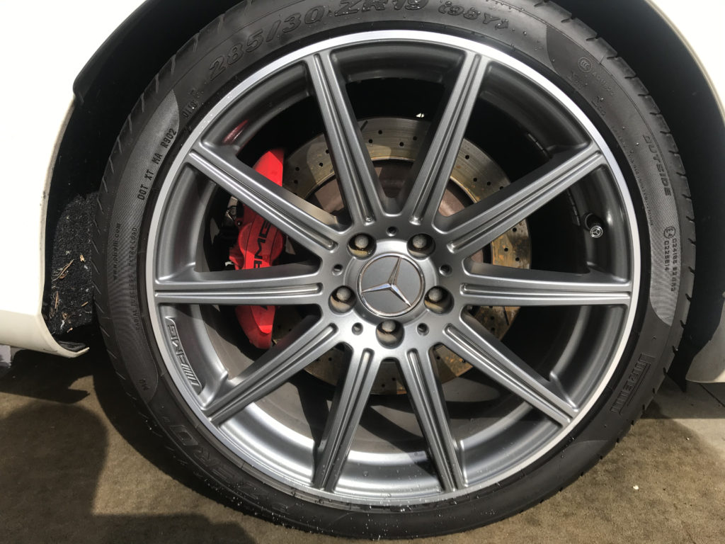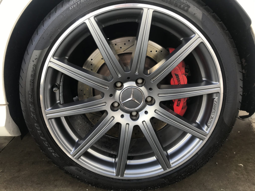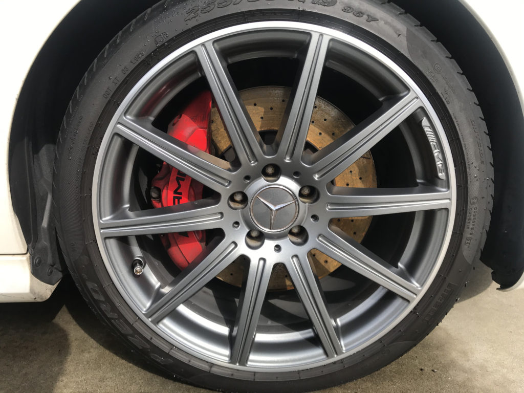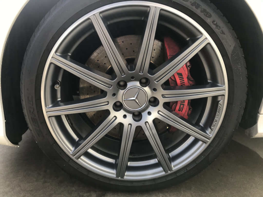 CRAFTS505の施工実績をご覧いただきありがとうございます、本日は以前ホイールリペアさせていただいたメルセデス・ベンツAMG E63Sのアルミホイールガラスコーティング施工をさせていただきました。欧州車のブレーキは効きが良い反面ブレーキダストが多いのが特徴でなかなか汚れが落ちないため諦めて放置する事があると思います、当店のガラスコーティングをしておくとさっと水洗いで簡単綺麗にダストを落とす事が可能になりますのでお試しください。