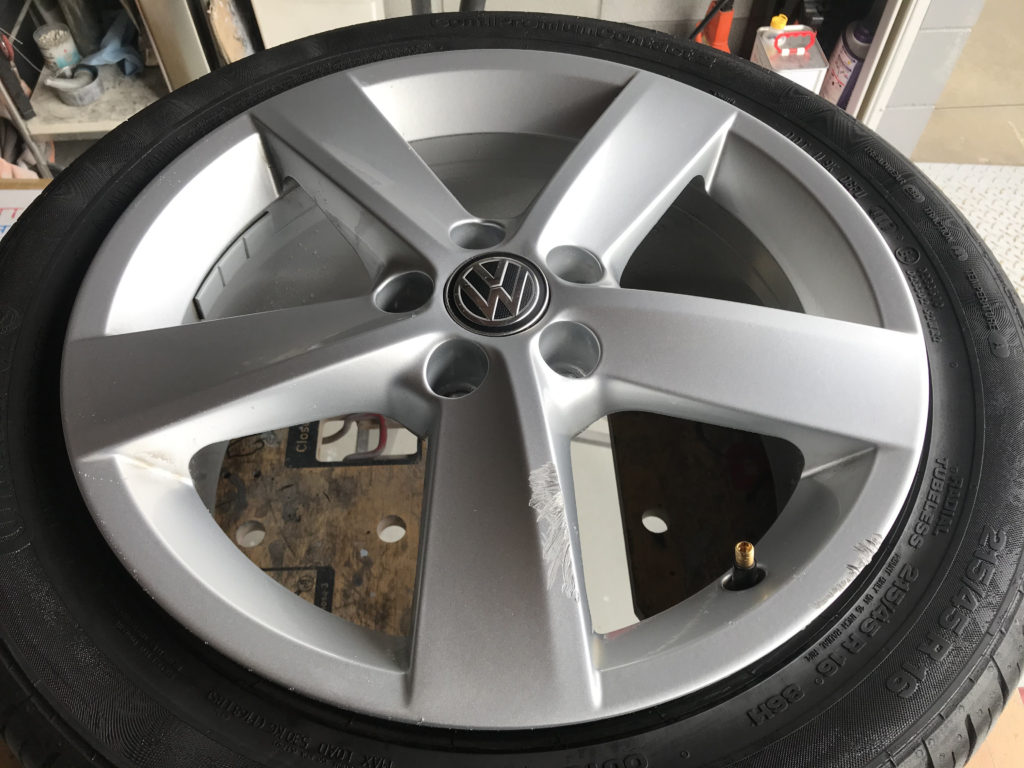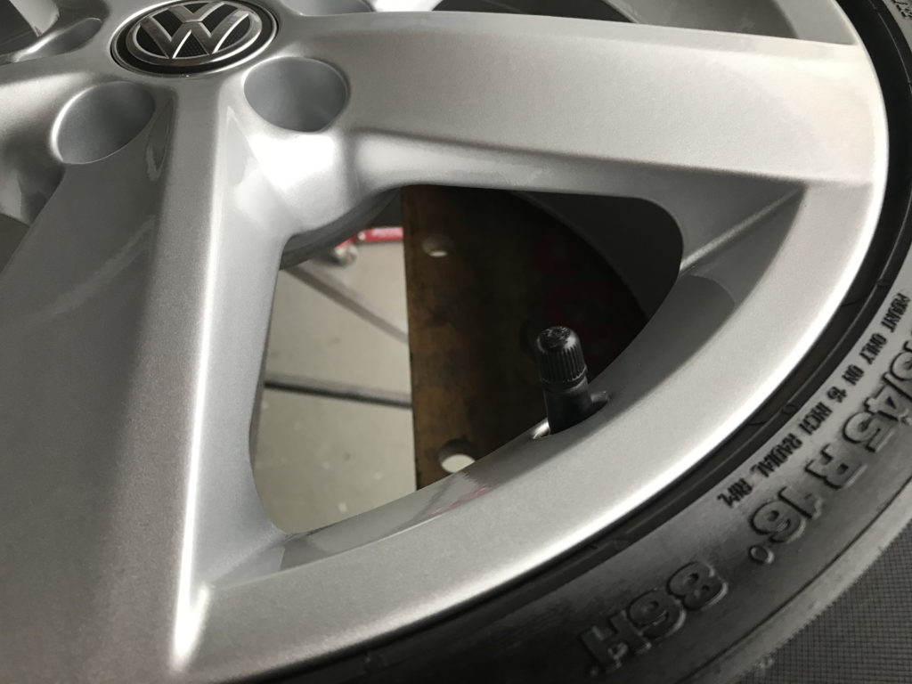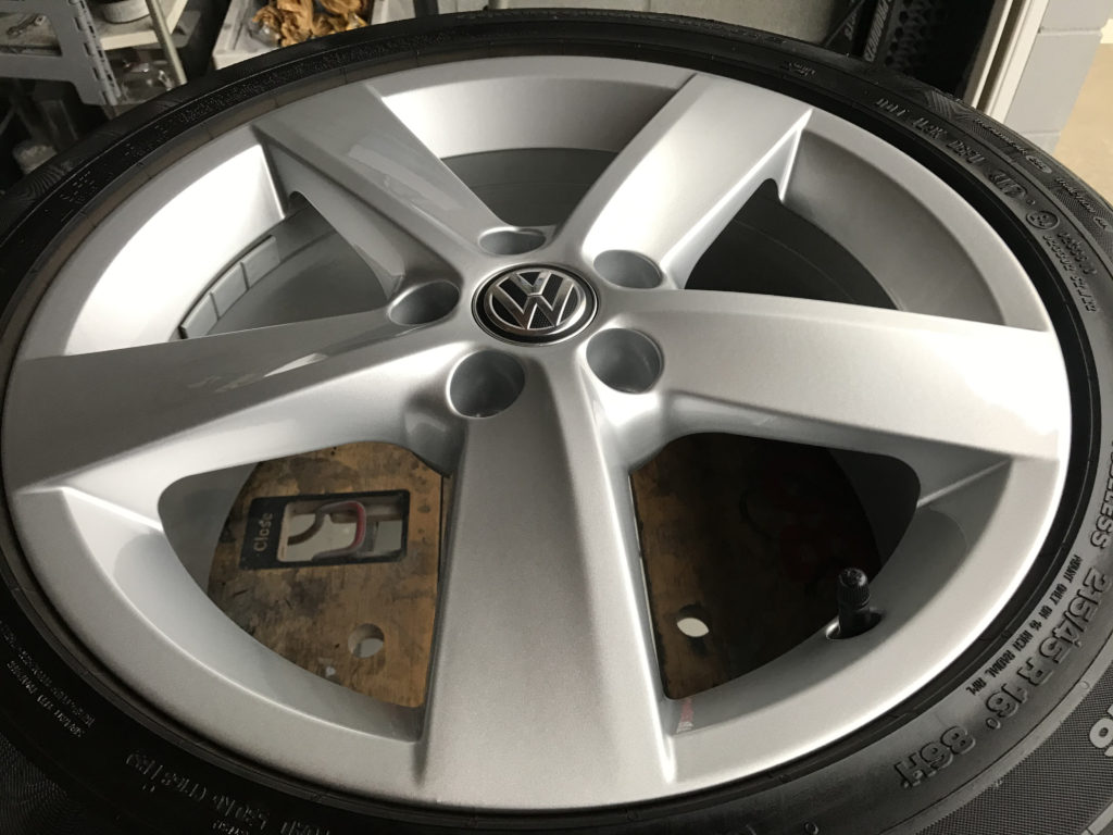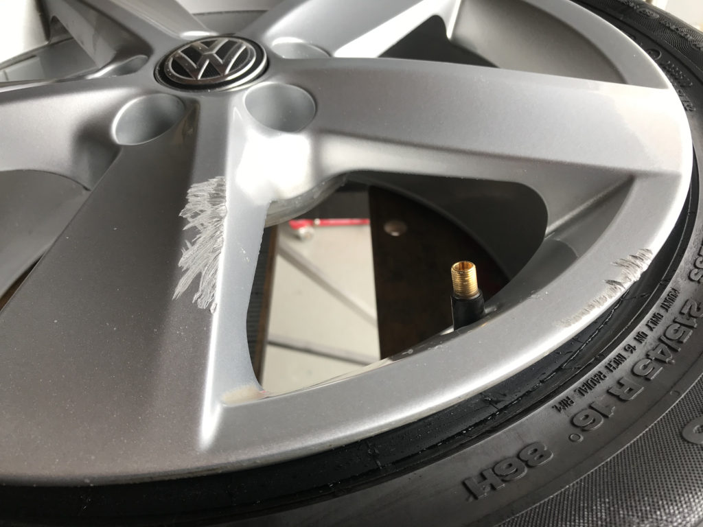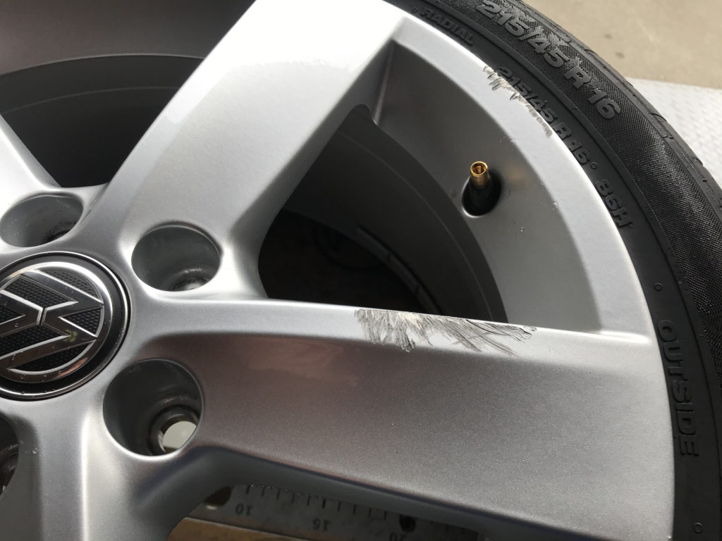 CRAFTS505の施工実績をご覧いただきありがとうございます、本日2件目はフォルクスワーゲン販売店舗様からのご依頼でポロのアルミホイールガリキズ を硬化パテを使用して部分ぼかし塗装でリペアさせていただきました。