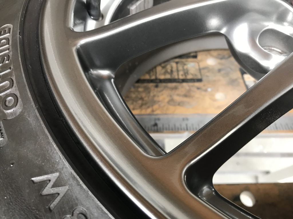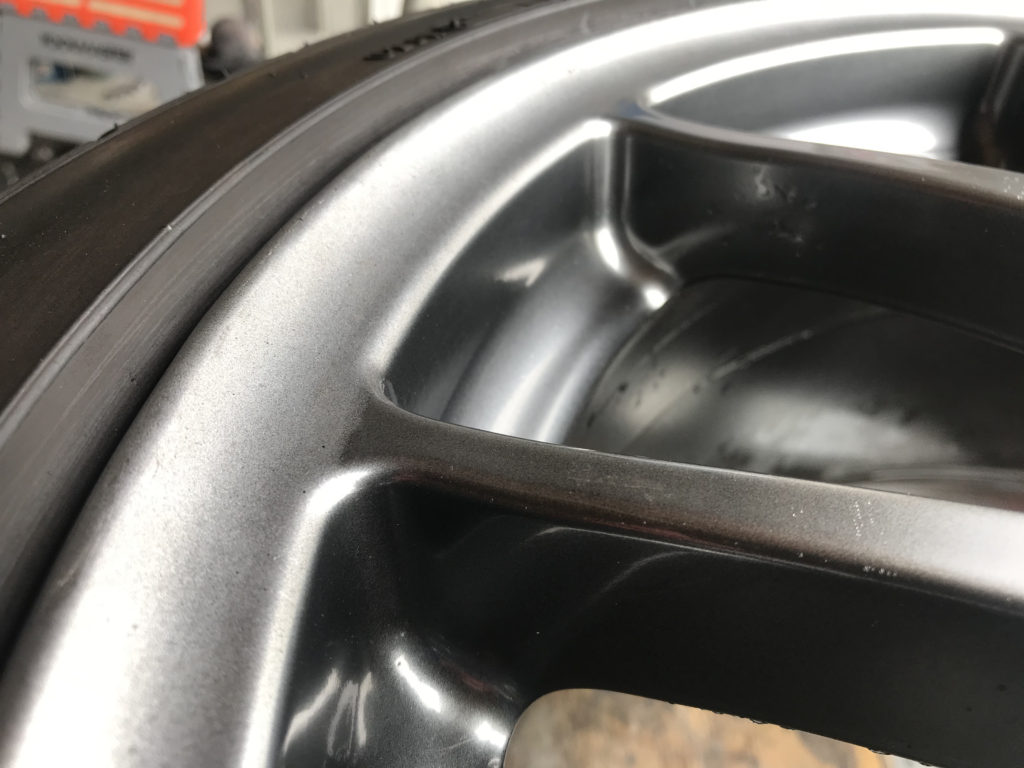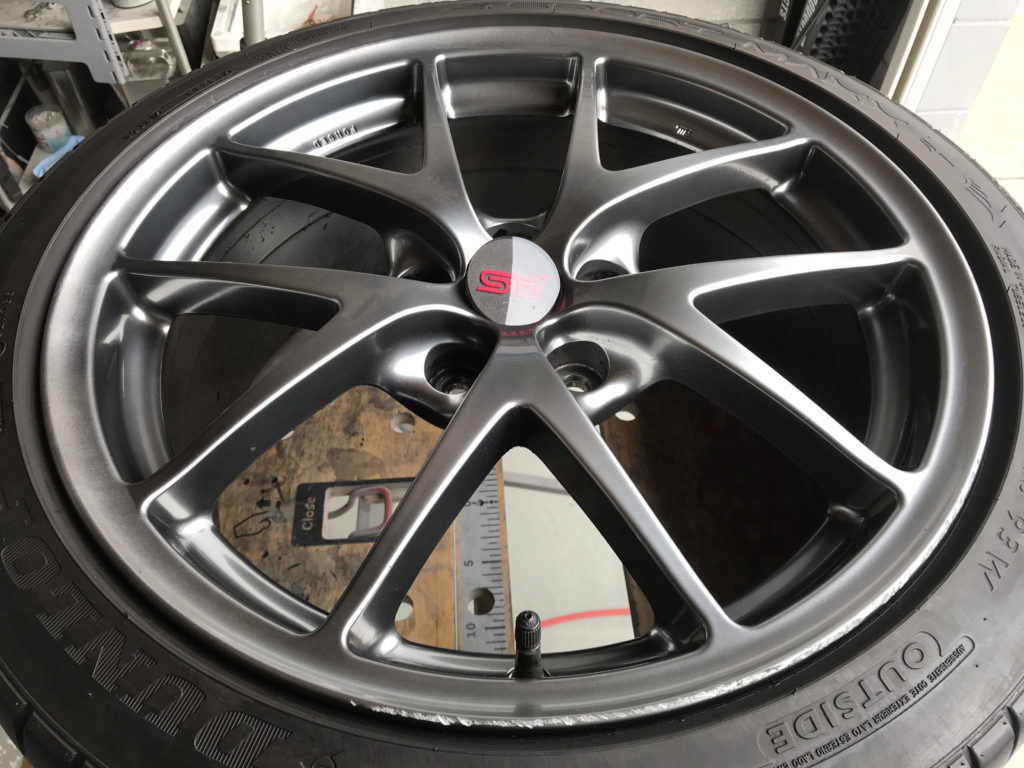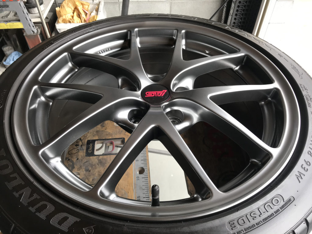 CRAFTS505の施工実績をご覧いただきありがとうございます、本日の施工はスバルWRX STIの純正18inchアルミホイールキズをガンメタハイパー塗装でリペアさせていただきました。