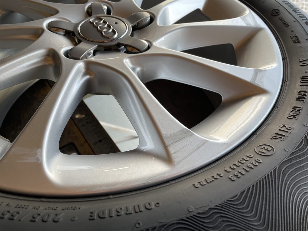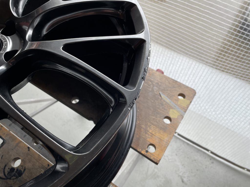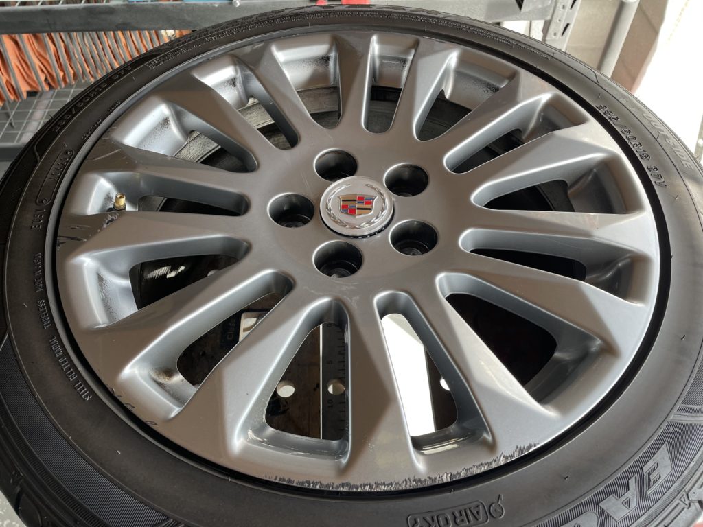 CRAFTS505(クラフツゴーマルゴ)の施工実績をご覧いただきありがとうございます、本日はキャデラックXT6の純正ガンメタ/ポリッシュアルミホイール擦り傷をスポーク研磨でリペアしました。