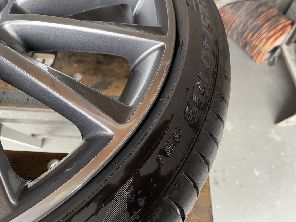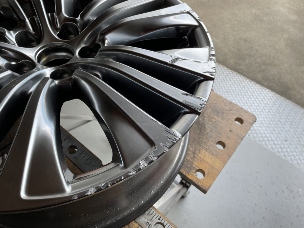 CRAFTS505の施工実績をご覧いただきありがとうございます、本日はメルセデス・ベンツ純正ホイールでガンメタ/ダイヤモンドカットキズをポリッシュ塗装でリペアさせていただきました。