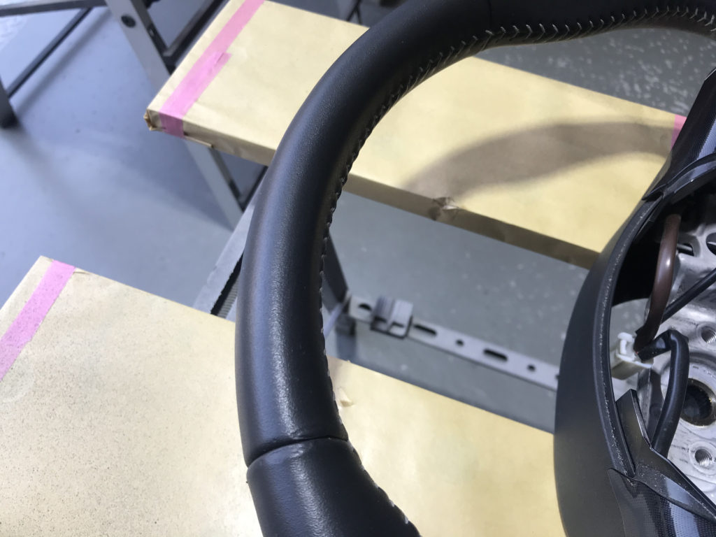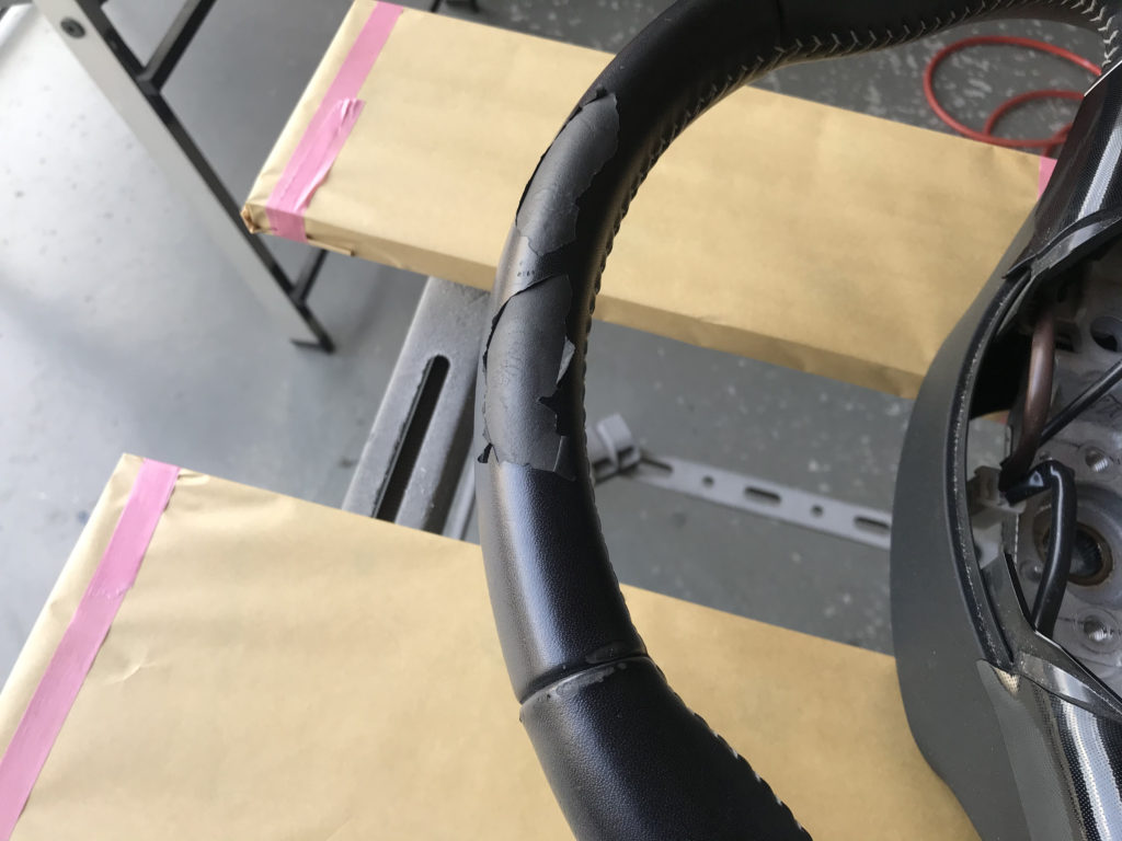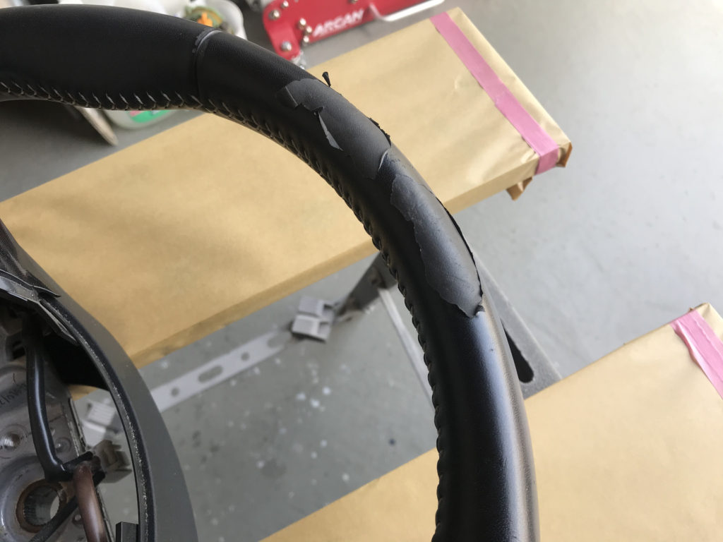 オーナー様自身で貼ったレザーの切れ端があり、それをめくると表皮が剥がれている(画像撮り忘れ)状態でした。