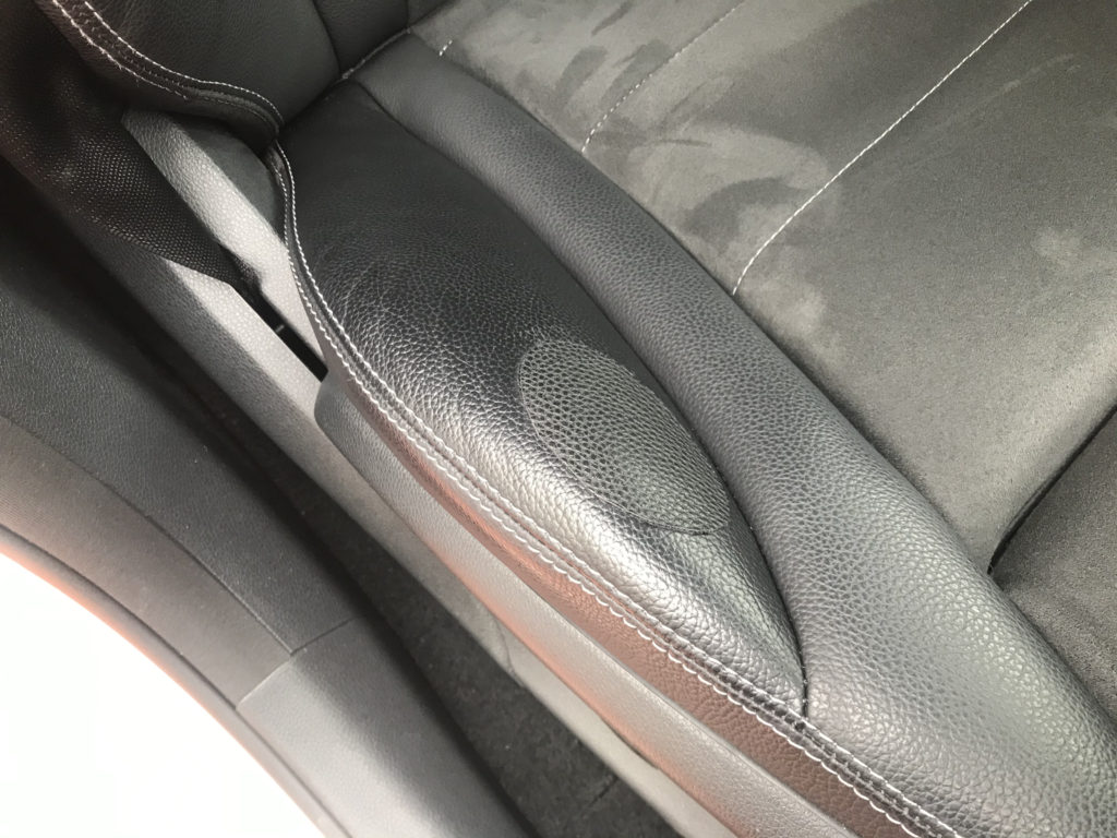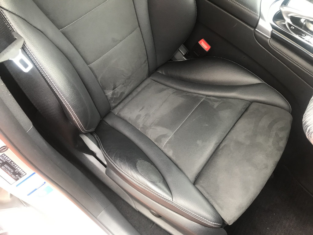CRAFTS505の施工実績をご覧いただきありがとうございます、本日は販売店舗様に伺いメルセデスGLC250の本革シート表皮剥がれを柔軟性のあるパテを使い表皮を整えてから本革の風合い塗装でリペアさせていただきました。