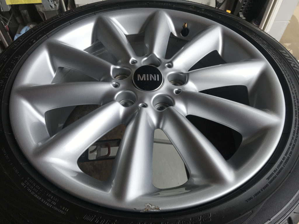 CRAFTS505の施工実績をご覧いただきありがとうございます、本日はミニクラブマン純正アルミホイールのキズをリペアさせていただきました。