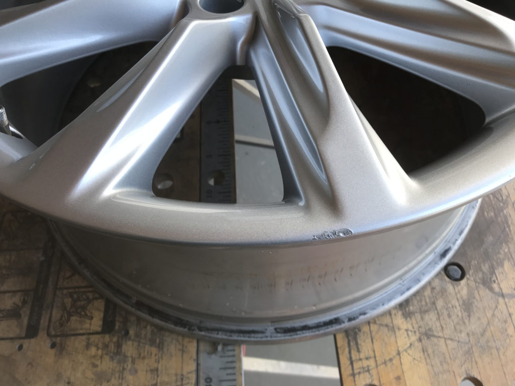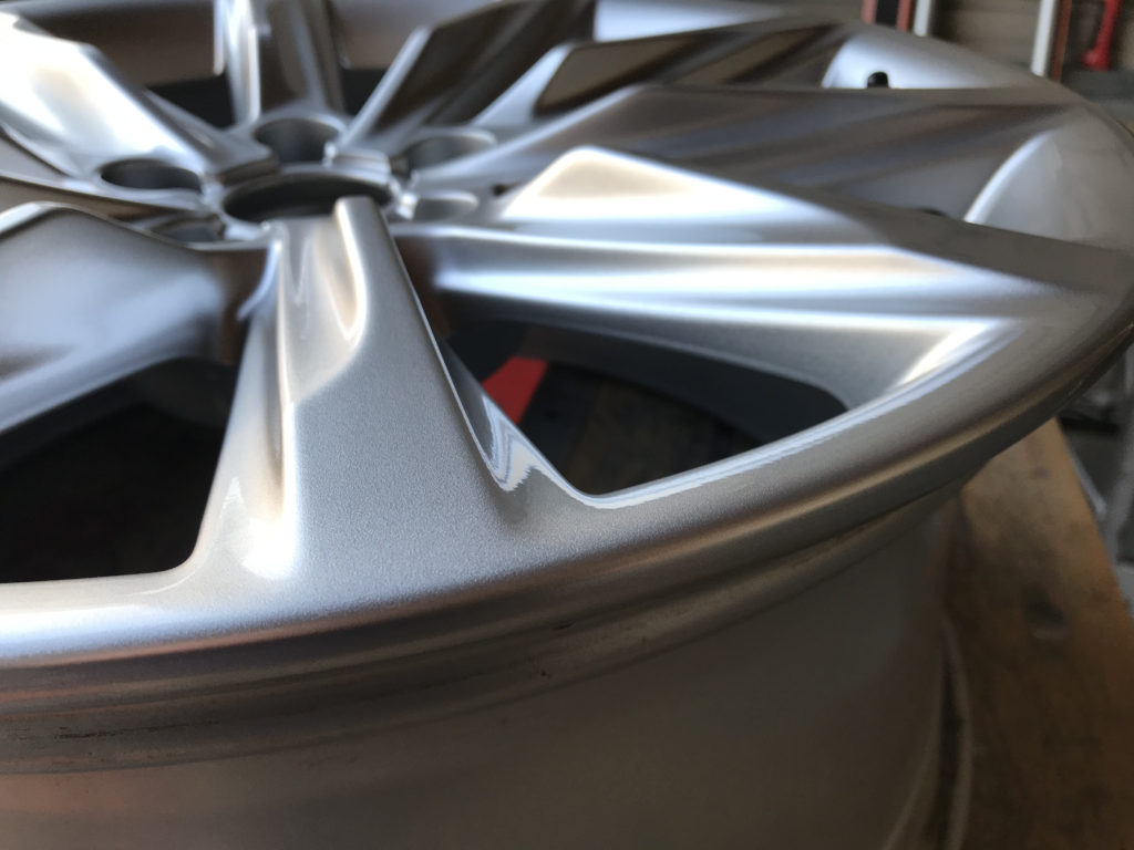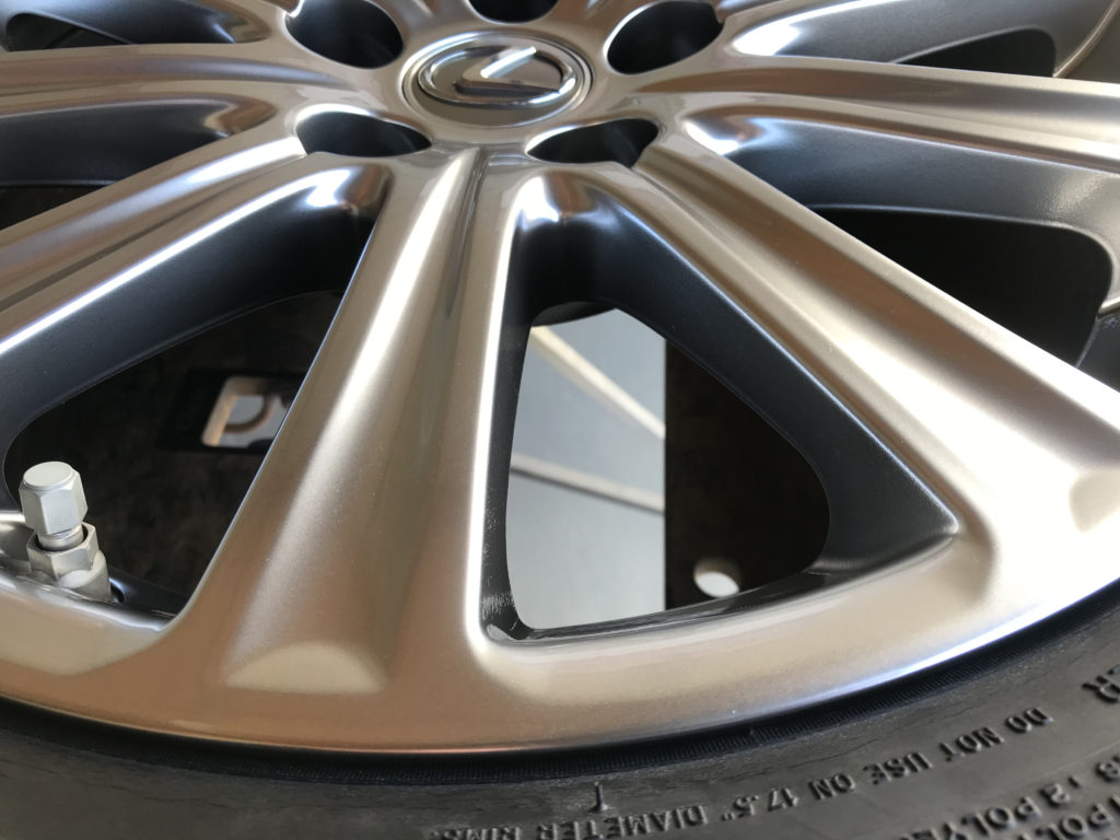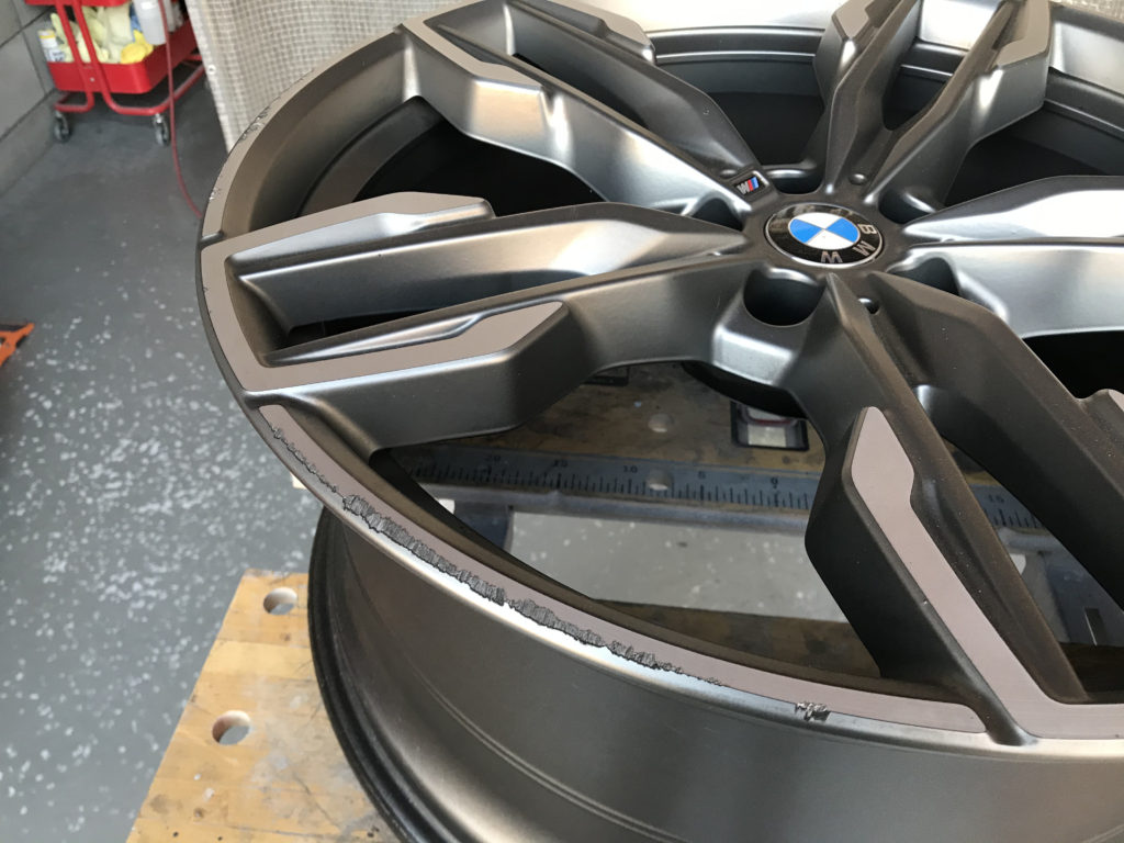 CRAFTS505の施工実績をご覧いただきありがとうございます、本日はBMW 640iカブリオレの純正18inchアルミホイールガリキズ 3本をリペアさせていただきました、抉れキズは形状が変わらないように硬化パテを充填して丁寧に成形を行い同様のシルバー色で塗装リペアさせていただきました。