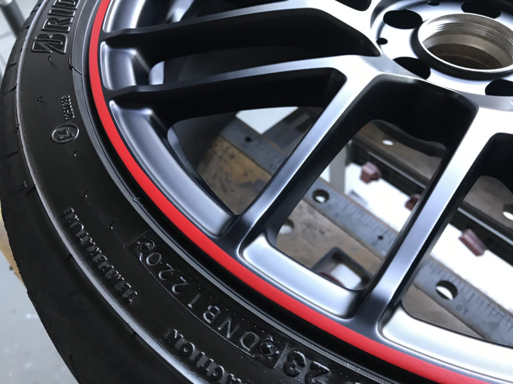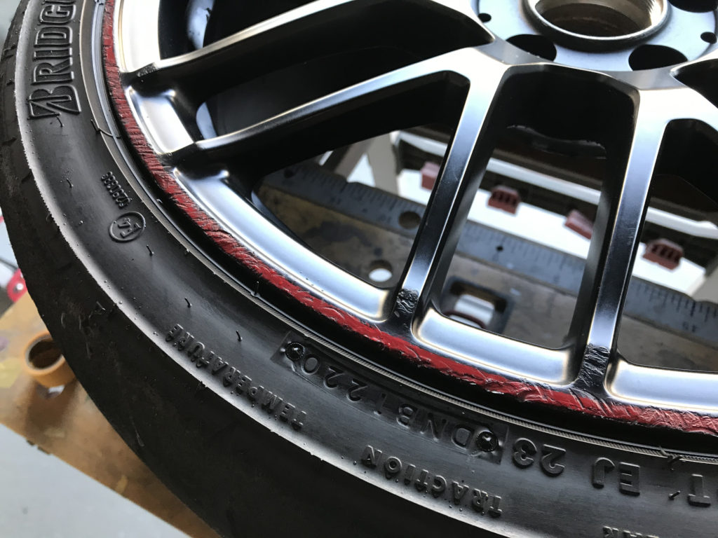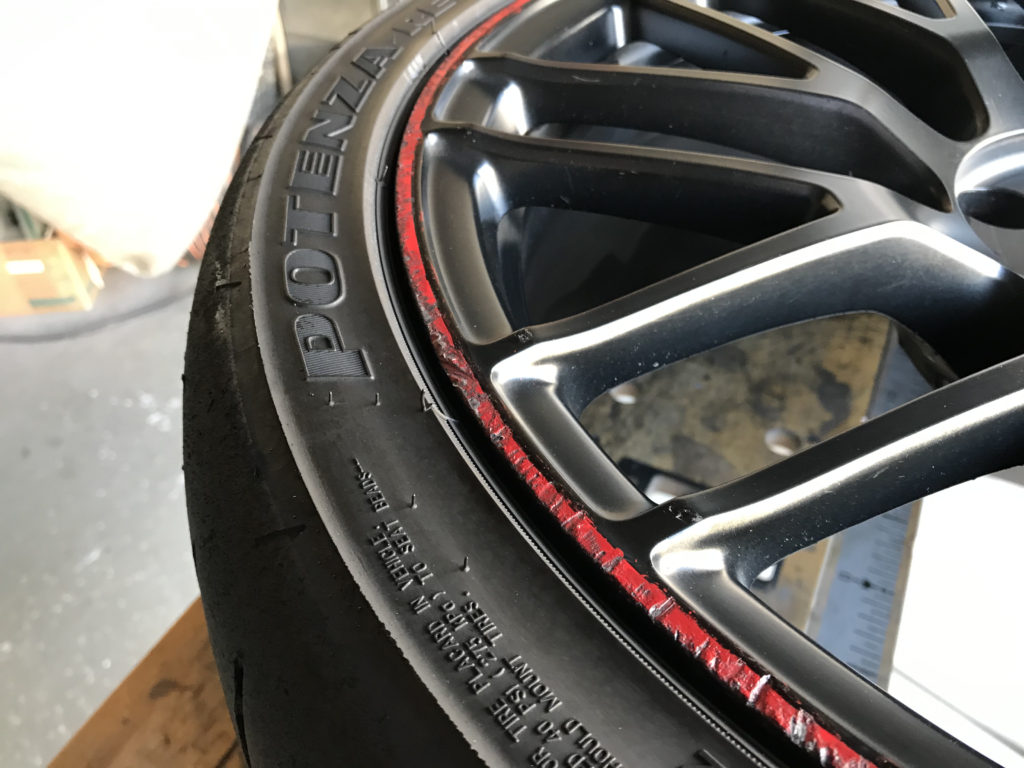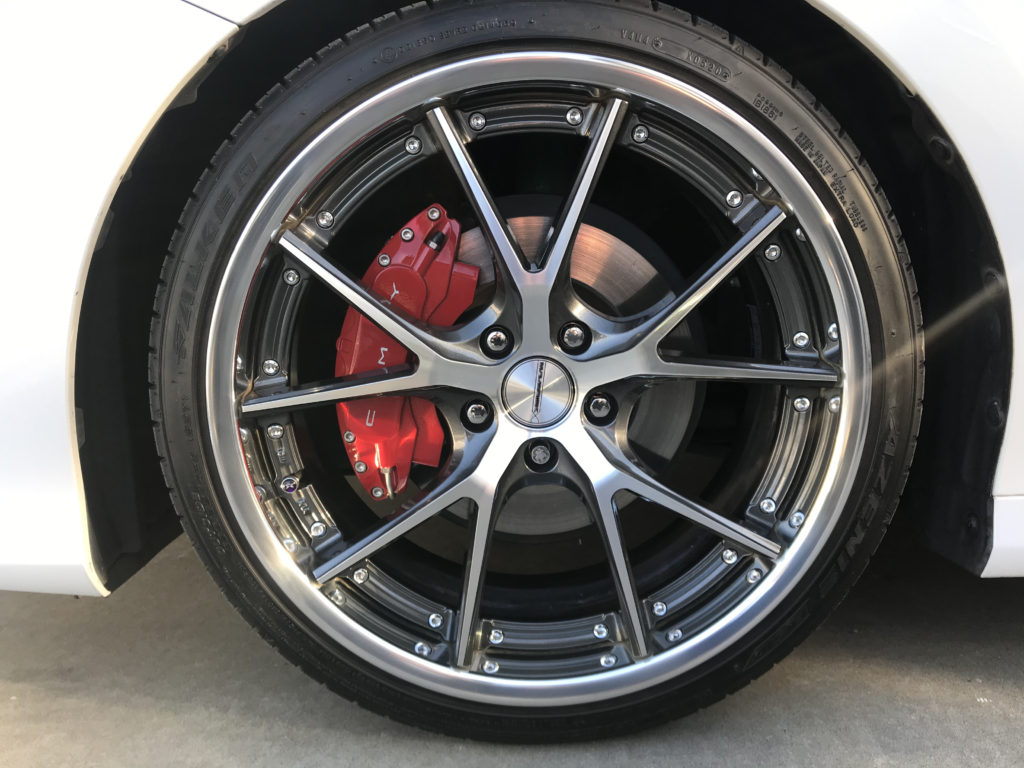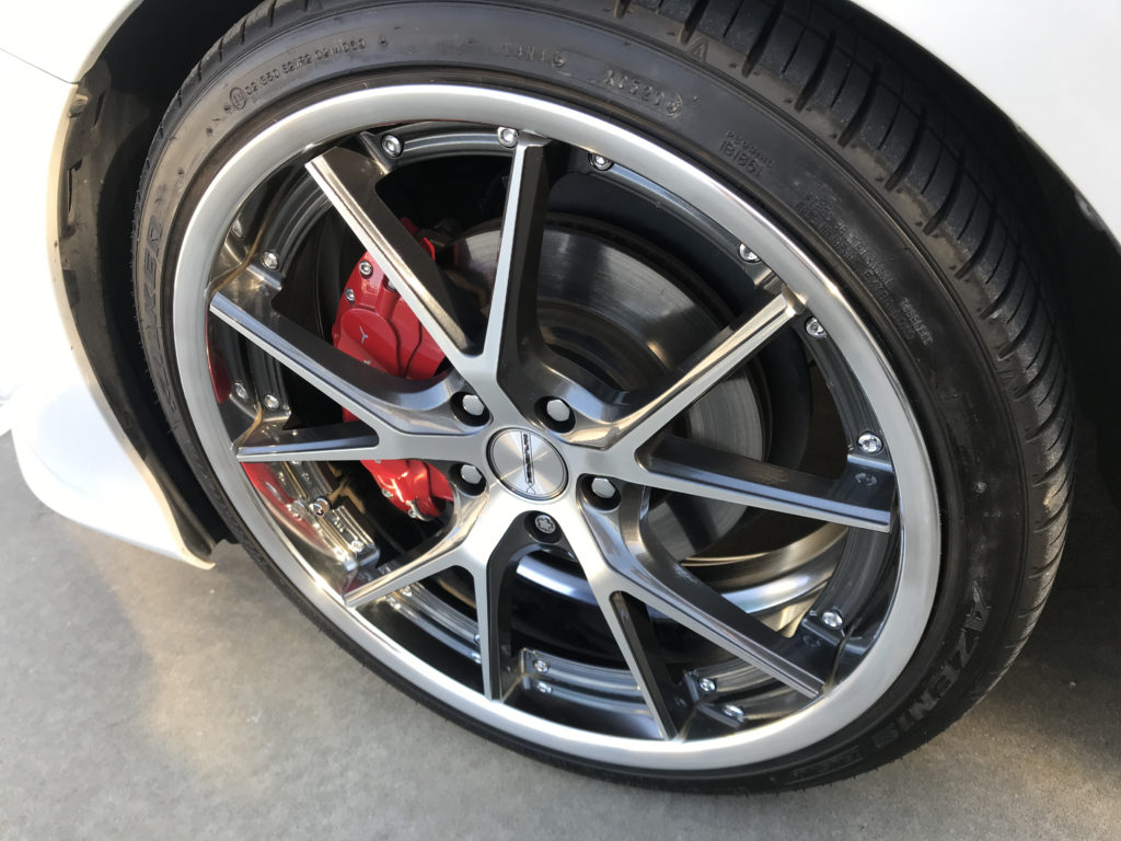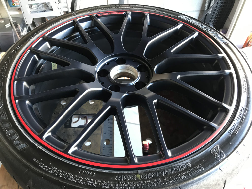 CRAFTS505の施工実績をご覧いただきありがとうございます、本日2件目のご紹介は、メルセデスAMG C63Sの19inchレッドライン/マットブラックアルミホイール2本のガリガリキズをマットブラック塗装とレッドライン再生塗装でリペアさせていただきました。