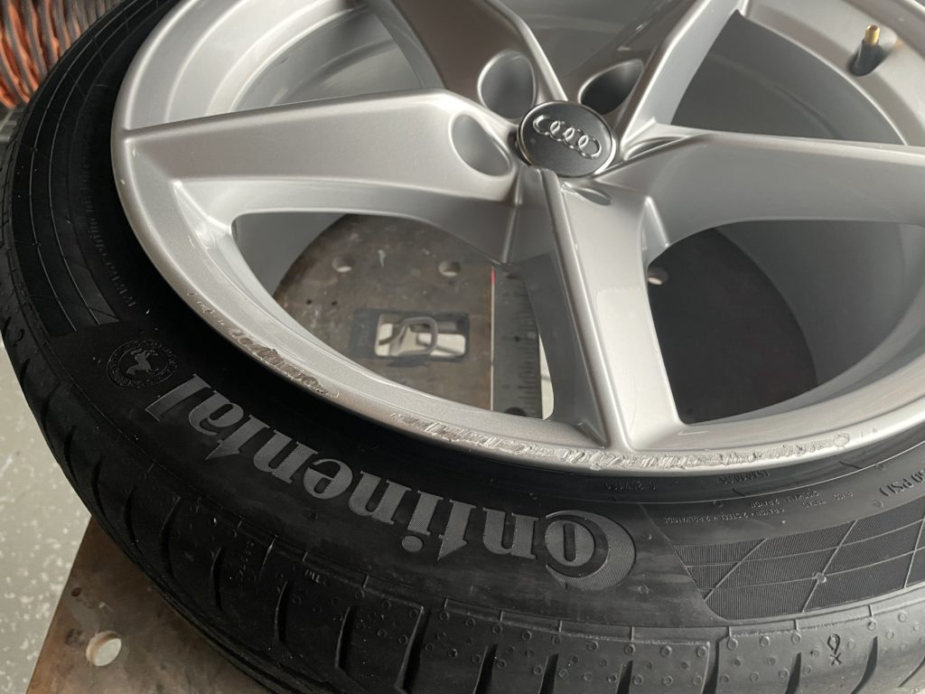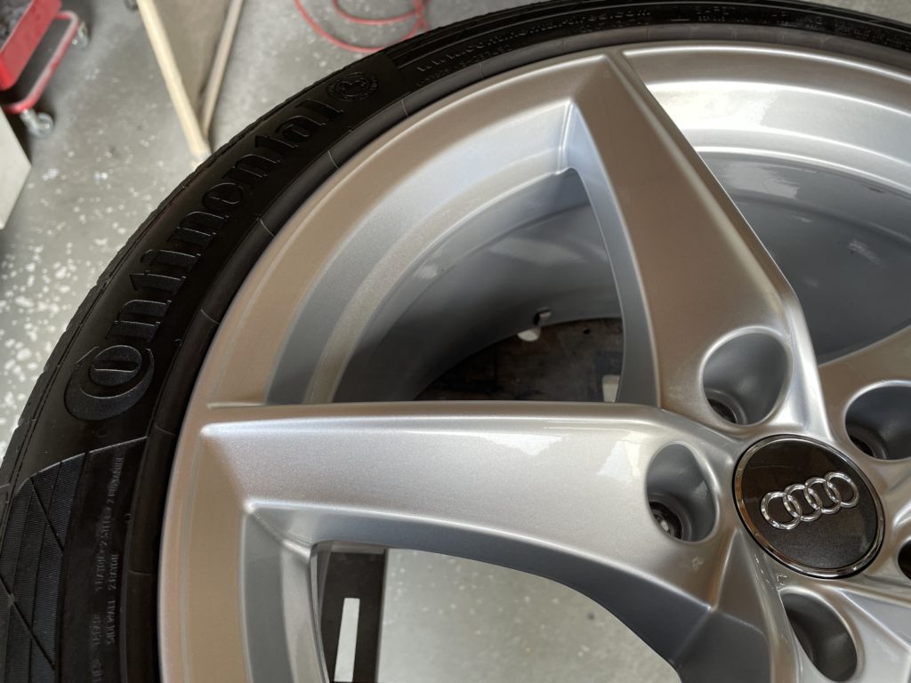 神奈川県横浜市青葉区のトータルリペアCRAFTS505(クラフツゴーマルゴ)の施工実績をご覧いただきありがとうございます、本日はアウディA5の純正アルミホイールガリキズ2本を同様のシルバー塗料を使いぼかし塗装でリペアさせていただきました。
