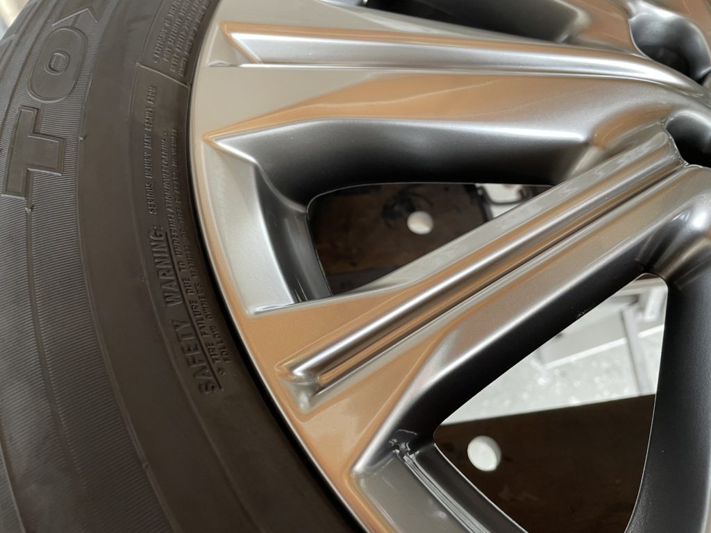 神奈川県横浜市青葉区のCRAFTS505(クラフツゴーマルゴ)の施工実績をご覧いただきありがとうございます、本日はマツダ・CX-8の純正アルミホイールキズを金属調の重厚な輝きを再現するために下地にブラックを入れ特殊な塗料を吹きかけてリペアさせていただきました。