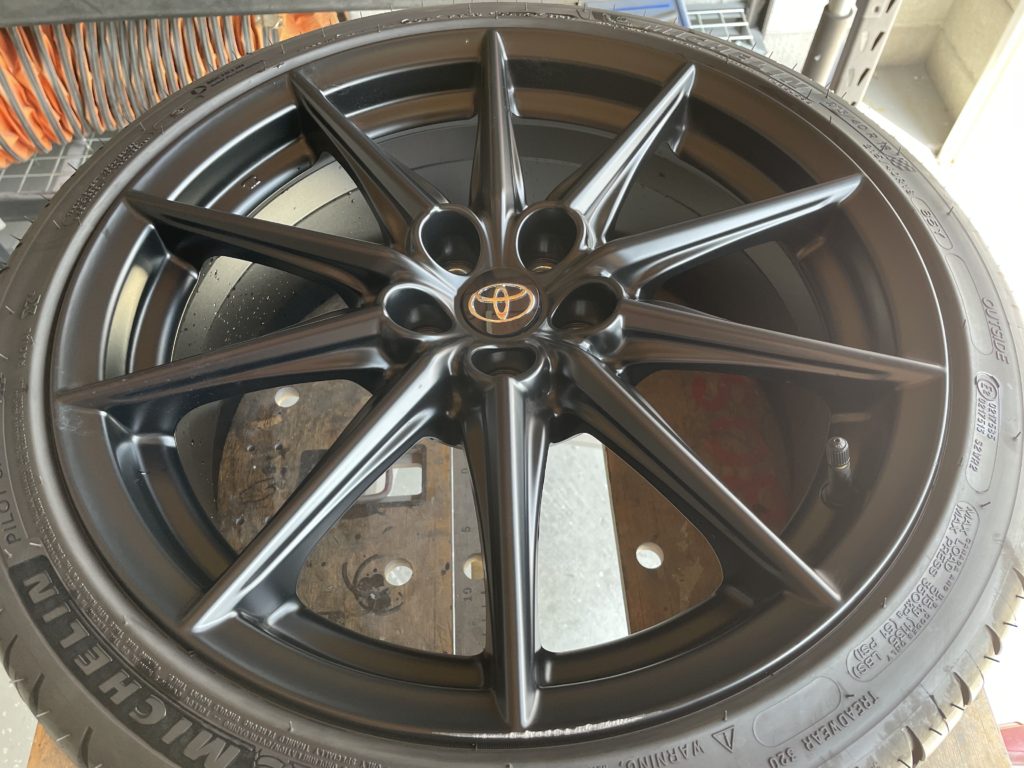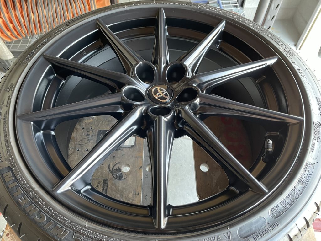 CRAFTS505(クラフツゴーマルゴ)の施工実績をご覧いただきありがとうございます、本日は日産スカイラインR35 GT-R純正アルミホイールガリキズをアルミパテ充填を行い下地色にブラックを入れ特殊な塗料を同様の風合いになるよう吹きつけてリペアさせていただきました。