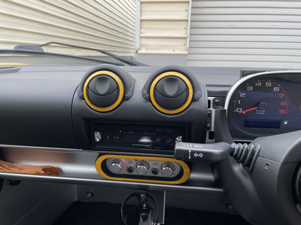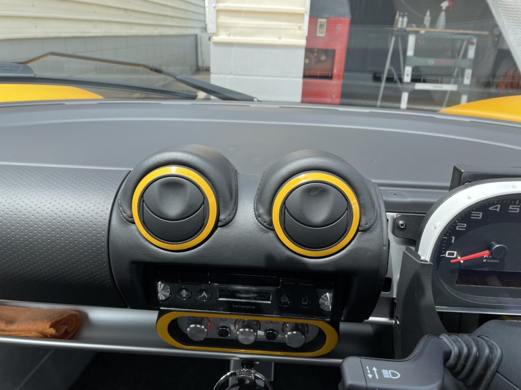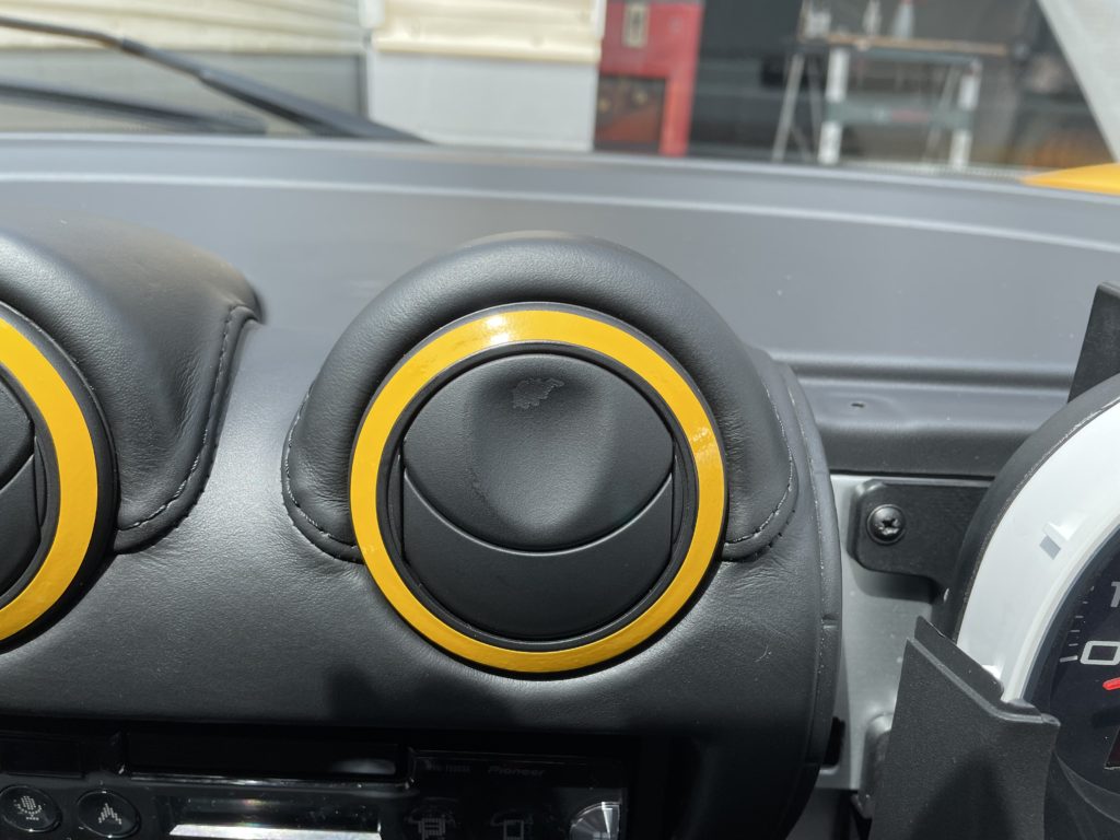 CRAFTS505(クラフツゴーマルゴ)の施工実績をご覧いただきありがとうございます、本日はロータス・エリーゼのエアコンベンチレーター塗膜剥がれとファブリックシート焦げ穴のリペアをさせていただきました。