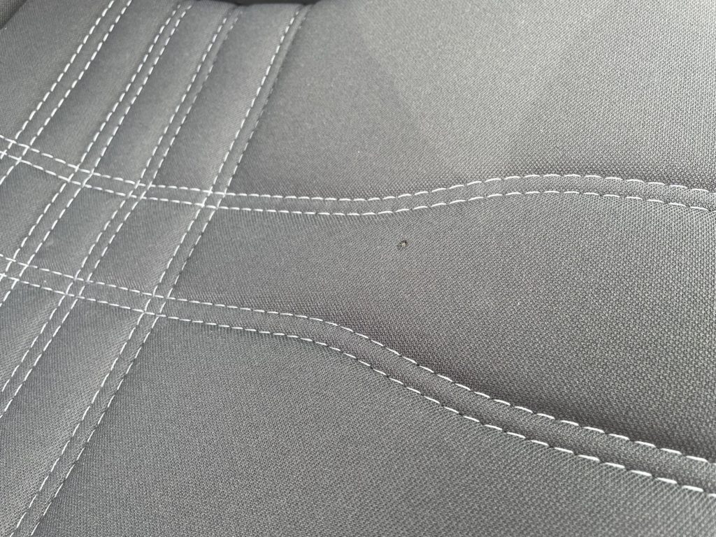 エアコンベンチレーターの塗膜剥がれは丁寧に表面を整え塗装を行い、ファブリックシート焦げ穴は特殊はファイバーを充填して目立たなくさせていただきました。